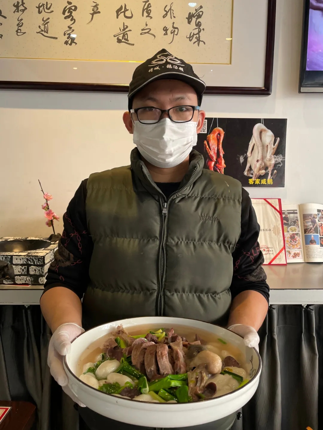 蒋永亮介绍,藏鹅这个步骤尤为关键,可以让鹅肉吃起来更具口感。通常会把从市场采购回来的老鹅,通过喂养稻谷、蔬菜等来改变饮食习惯,让鹅排出体内的饲料后不断地长出结实的肉,从而在烹饪时能提升鹅肉的口感。鹅汤糍的小配菜也相当讲究,用于提鲜和去油腻的芹菜和蒜苗必须是香芹和红头蒜,因为这样更香更压腥。