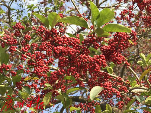 满树的红果将绿叶包围值得一提的是,在广西汉墓考古中发现,距今2000多年的汉代墓葬中常陪葬有铁冬青的树叶和种子。