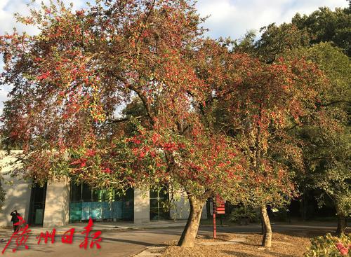 熟果红若丹珠,一簇簇密密匝匝布满树梢,引得成群鸟儿前来逐食……广州日报全媒体记者今天在华南植物园见到这棵挂满迷你山楂状果实的高大乔木叫做铁冬青。铁冬青是中国常见乡土树种,亦是华南地区常见中草药,为广州廿四味凉茶配方其中一味。在花市上,铁冬青花后果由黄转红,秋后红果累累,十分可爱,花农也喜欢将铁冬青叫做“万子千红树”。