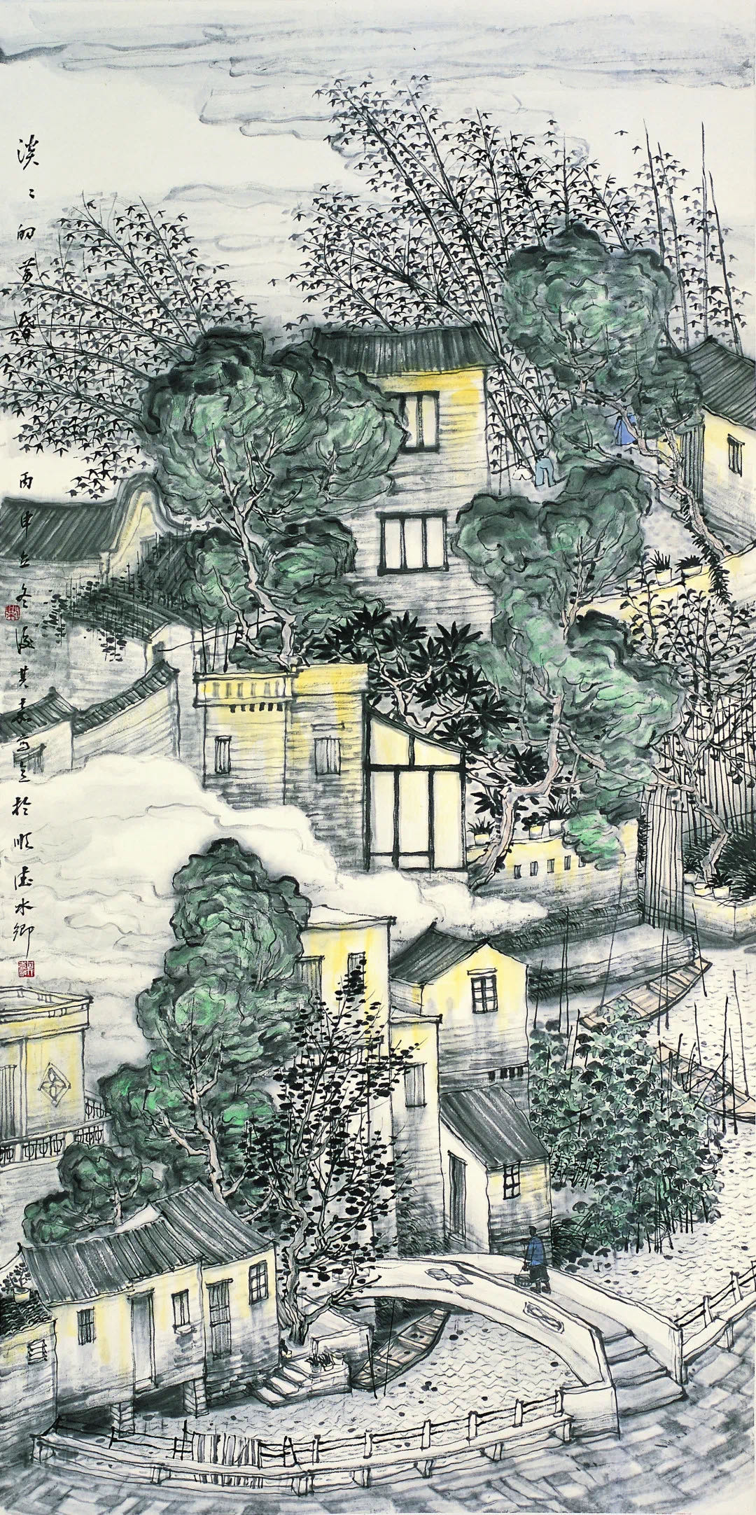 通过“静听乡音——叶其嘉、何婉薇中国画作品展”展出的作品,观众可以感受到两位作者在绘画表现手法上,慢慢地向传统回归的走向。画面上的传统首先从表现手法开始。可以从作品的墨色运用到树木、房屋等的表现上,多了许多富于传统理念的表达方式,甚至传统技法的直接运用,从而感受到画家在表达手法上逐渐回归传统的态度。佛山书协主席王志敏在前言提到,“正是这取向,从境界上使画面宁静的感受获得更有效的渲染。无疑这正体现出乡土田园画题材表现手法上的不断深化。”