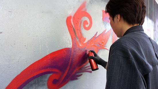 ▲Mok正在进行涂鸦创作 潘潇雨摄