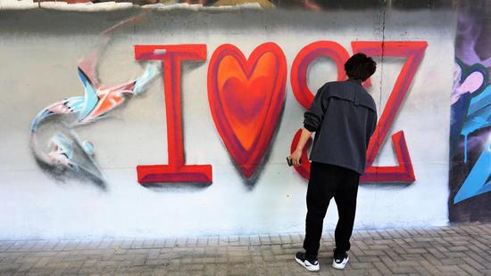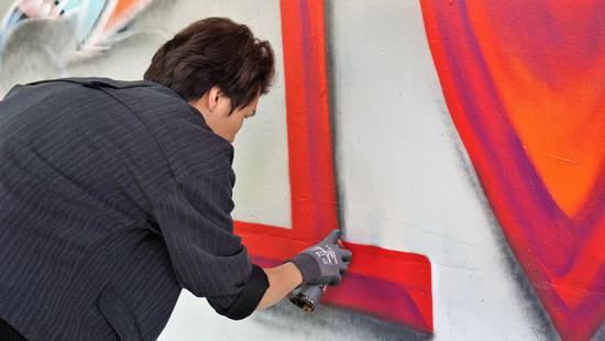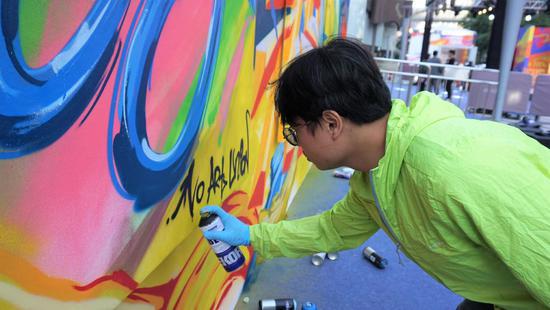 ▲Megic正在进行涂鸦创作 潘潇雨摄