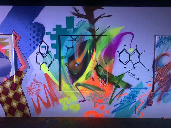 ▲Mok的团队正在进行涂鸦创作 潘潇雨摄