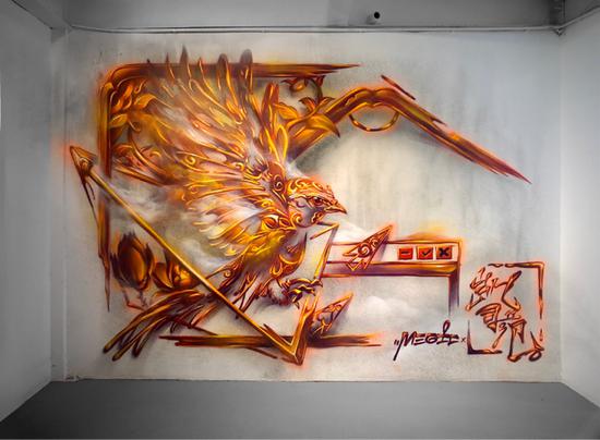 在形成新传统风格时,Megic也在尝试寻找涂鸦创作的意义,“我在涂鸦里加入传统文化的元素,这样创作时就有了章法和依据。”他认为涂鸦带给自己的意义,在于实现了个人价值与社会价值的联系。