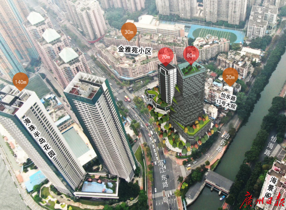 未来生态地标效果图根据规划,珠江泳场公交总站和打捞局地块待地铁施工完成后,将规划建设两栋生态地标,承载复合城市功能,包括架空公交站场、综合行政办公、公服配套设施、回迁住宅等,营造全天候活力城区。西侧一栋为80米高,规划用于打捞局办公和会议中心。东侧一栋为70米高,规划架空层公交车总站和回迁住宅,裙楼将有公服配套。未来的公交车总站面积将比原来的珠江泳场总站大,同时有连接地铁口的过街通道,可以横穿滨江路。
