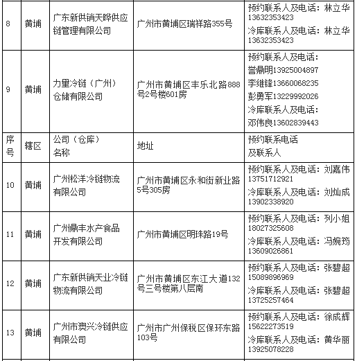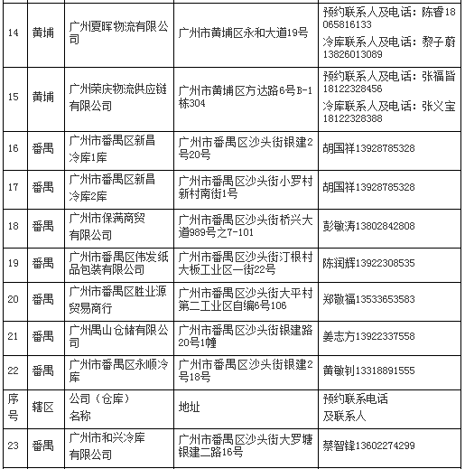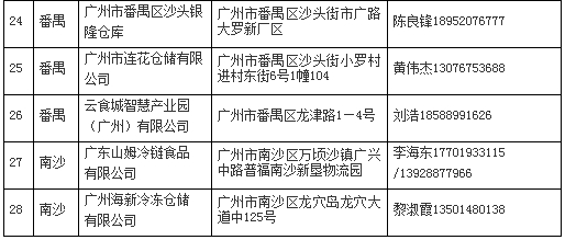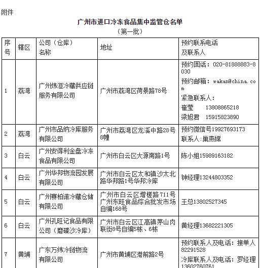 广州市进口冷冻食品集中监管仓名单(第一批)