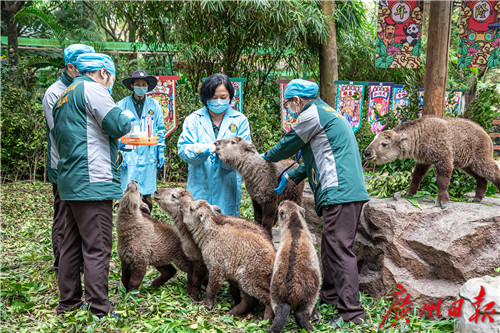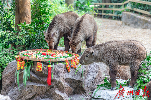 据悉,为了做好羚牛在华南地区的保护和种群繁殖工作,长隆在广东清远地区开始筹建世界珍稀野生动植物种源基地,目前已有40多只金毛羚牛在那里进行环境适应和种群繁殖工作。