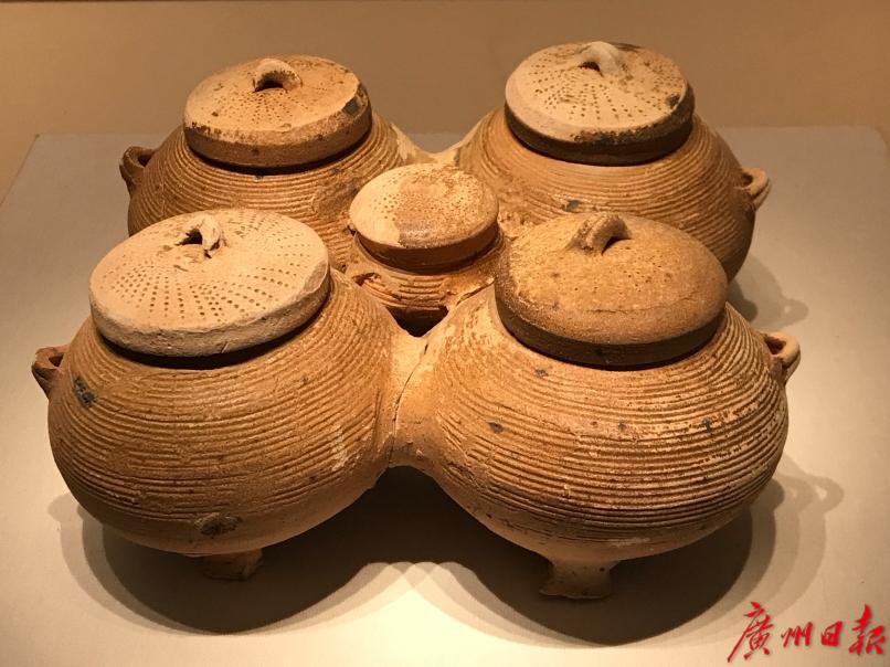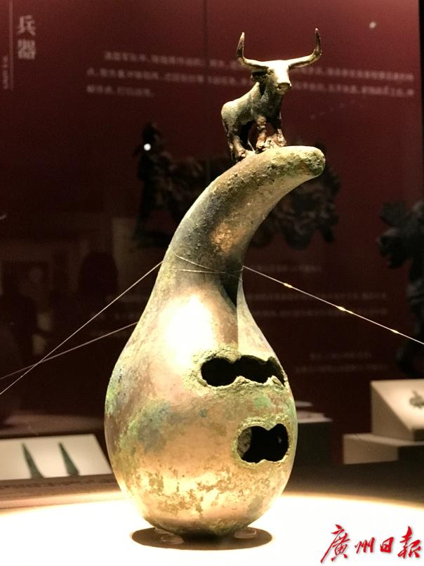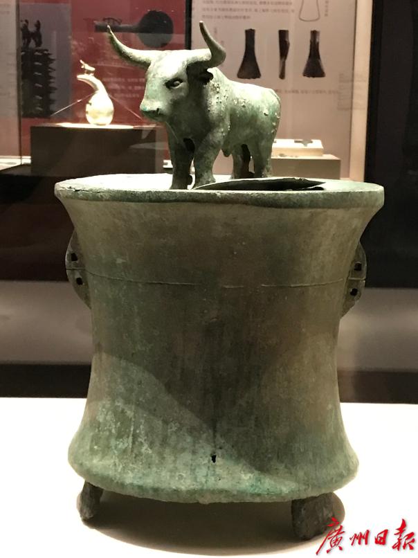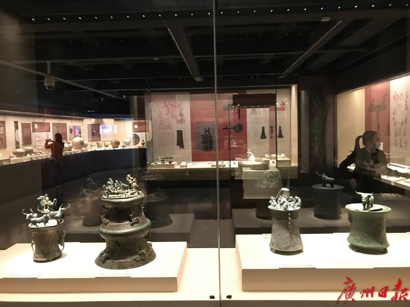 此次展出的西汉时期广州陶屋、南越王宫署遗址出土的“万岁”瓦当以及望柱等文物则反映了南越国在干栏基础上对中原建筑技术的吸收和融合。此外,铜鼓、羽人等越族特色器物或纹饰均在两地有所发现,可见滇国与南越国无论在地缘、族属还是文化上,都有着千丝万缕的关系。