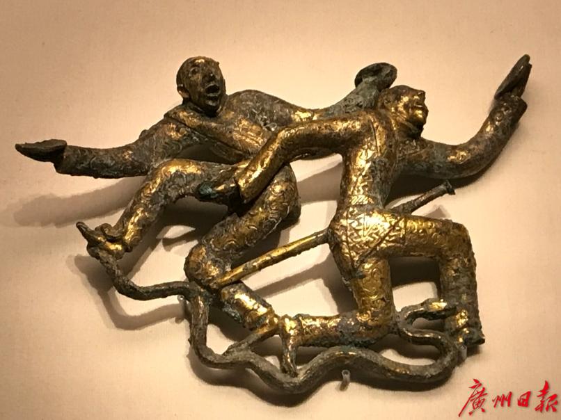 惊险壮观的八人猎虎场景、手持铜钹对舞的异域来客、三十五人的群体祭祀赶集活动……289件(套)滇粤两地汉代珍贵文物亮相广州,再现2000多年前滇、南越两个地方王国的历史图景。