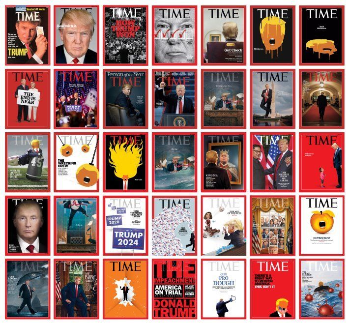 《时代》周刊向来有让总统上封面的传统。在登上封面次数最多的前10名人物中,有8位是当时的美国总统。虽然特朗普多次夸耀自己上《时代》封面的次数创纪录,但实际上,他的35次只能排第4名,前3位分别是尼克松(55次)、里根(46次)和克林顿(40次)。