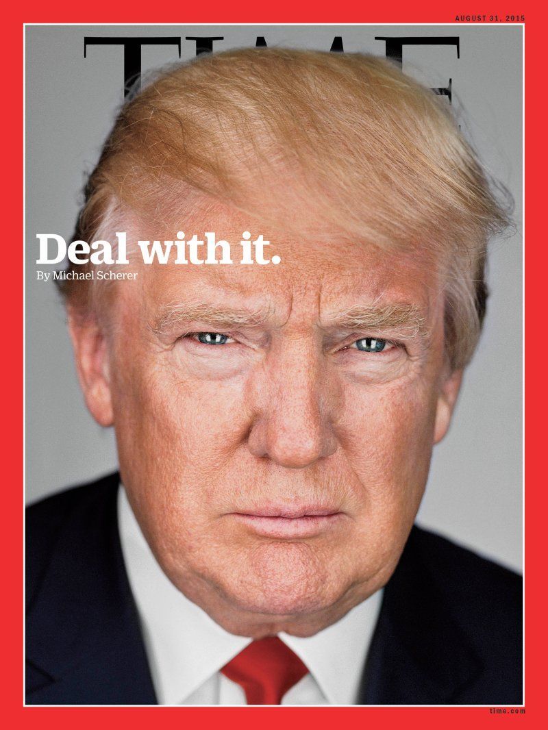 作为总统候选人的特朗普第一次登上《时代》封面。此后,使用特朗普真实照片的封面越来越少,转而以艺术创作的形象取而代之。图片来源:time.com