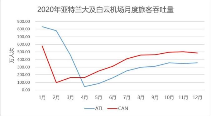 曾经的全球客流量“霸主”美国亚特兰大国际机场1月23日公布了2020年运营统计数据,2020年,亚特兰大机场旅客吞吐量为4291.87万人次,同比下降61.17%。此前,广州白云国际机场已经公布了2020年运营统计数据——白云机场全年旅客吞吐量为4376.8万人次,较亚特兰大机场多80多万人次,成功登顶2020年全球机场吞吐量首位,这也是中国机场首次问鼎全球机场年度客流量第一。