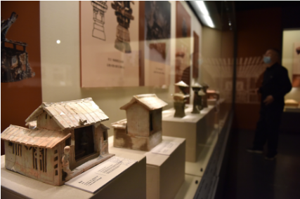 此次展出的西汉时期广州陶屋、南越王宫署遗址出土的“万岁”瓦当以及望柱等文物则反映了南越国在干栏基础上对中原建筑技术的吸收和融合。此外,铜鼓、羽人等越族特色器物或纹饰均在两地有所发现,可见滇国与南越国无论在地缘、族属还是文化上,都有着千丝万缕的关系。