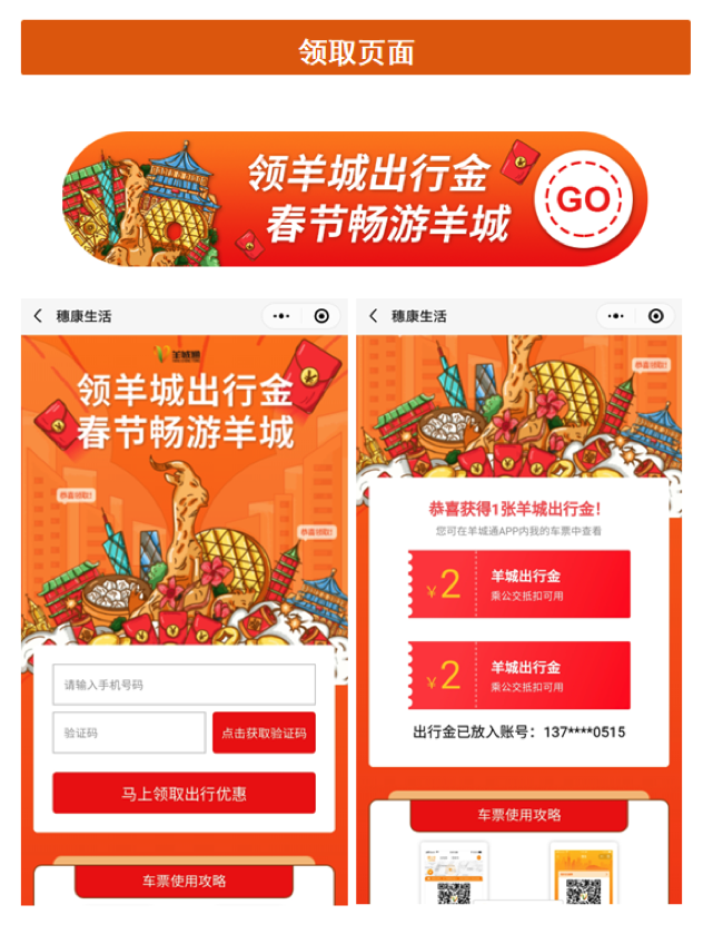 此外,为满足市民本地过年的出行需求,“穗康生活·爱羊城”平台从即日起到大年初七(2月18日),向市民发放20万张羊城通电子交通票。电子交通票通过二维码技术完成乘车支付,符合疫情期间“交通出行可溯源”的要求,支持广州市内全部公交线路刷码乘车。市民只需进入“穗康生活·爱羊城”平台,输入手机号即可领取,领取后可在羊城通APP、羊城通微信乘车码小程序使用。