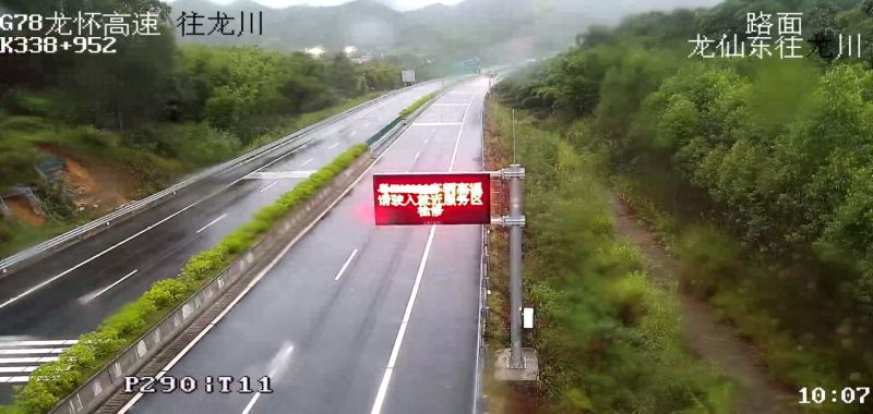 在测试阶段,工作人员扮演“车主”,在确保安全的情况下,在车内设置高温热源,车辆行驶至测温龙门架,监控中心立即收到了预警,“车主”行驶到下一情报板时就看到了“粤Axxxxx车辆高温,请驶入就近服务区检修”的提示,同时还能听到高速上广播语音辅助提醒。