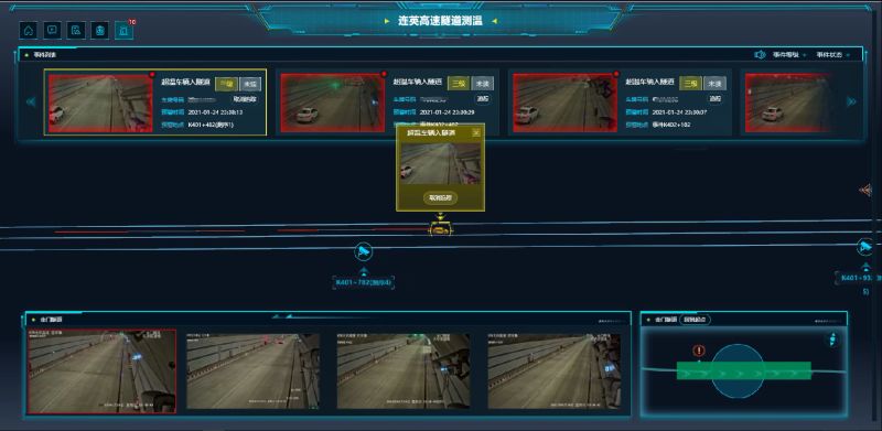 如果司机没有看到预警,或对警报置之不理,隧道内的车辆测序子系统就开始发挥作用。雷达高精准的车道级定位、视频监控采取高精度的视频图像处理技术,能对车辆位置、速度、轨迹进行实时锁定跟踪,并以数据化和可视化方式,清晰明了地显示监控指挥调度平台二维建模地图中。