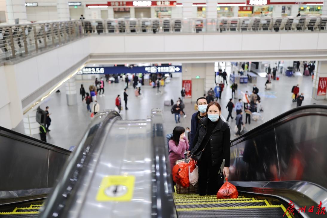 从广州南站地铁站到步入南站候车大厅,记者在春运首日现场的第一感觉就是人少,平日周末的客流也要多上数倍。回想去年春运开始之时,疫情虽然尚未暴发,但已有苗头,游客中已经零星可见戴口罩者。一年过后,显然国人已经对疫情和自我保护做到心里有底,自觉小心,南站全场不见不戴口罩者,即使接打电话也不拉下口罩。