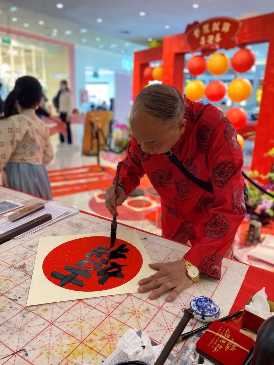 每逢过年,自然少不了各种喜气洋洋的春联和福字,但说到年味,还属书画名家们一笔一墨写出来的最有味道!“我想要一副具有牛年特色的春联。”春联摊位前排起了秩序井然的长队,居民们满怀期待地提出了各自的要求,只见书画名家蒙宇华笔走龙蛇,不一会儿一副副寓意吉祥的春联便跃然纸上。