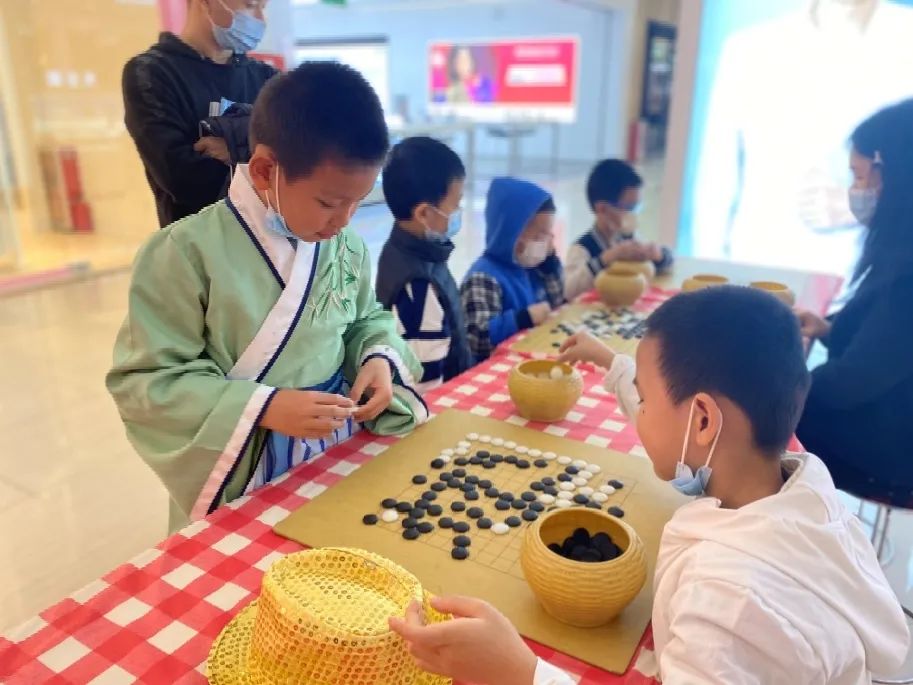 活动现场,东湖棋院中小学生棋类车轮大赛也在如火如荼地进行中,小选手们两两对坐,目光坚定地注视着棋盘,镇定地应对着对手的棋路,一会儿静心揣摩,一会儿落子如飞,对弈激烈难分胜负。