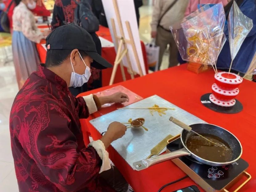“小朋友,你想要什么图案?”糖画大师张登峰向围在桌前的孩子们询问道。在大家充满好奇和期待的目光下,一根根糖丝儿随着张老师手腕的抖动,栩栩如生的图案便呈现在了眼前,闪耀着琥珀色的光泽,孩子们连连拍手惊叹。