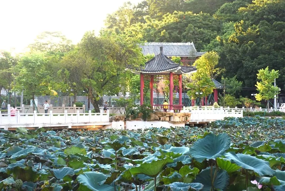 在刚完工不久的荷塘公园区域,根据场地增加荷花、诗句等主题元素。