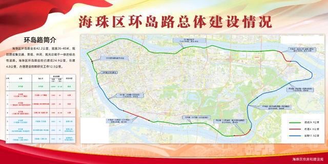 在最近5年的海珠区两会上,海珠区环岛路都是重点关注的议题,海珠区人大代表和政协委员积极对此献言献策。资料显示,海珠环岛路全长42.2公里,宽度26-40米,规划建成集交通、景观、休闲、观光功能于一体的标志性道路,有助于促进东西部创新发展要素互联互通,辐射带动区域高质量发展;有助于串联起太古仓码头、沿线公园、珠江航道、广州塔、会展中心等区域的旅游资源,打造城市靓丽风景带与休闲娱乐区。海珠环岛路是海珠区历届区委、区政府重点打造的建设项目。海珠区按照“整体规划、分段实施、逐个击破”的工作思路,成熟一段,征拆一段,建设一段,分段推进。