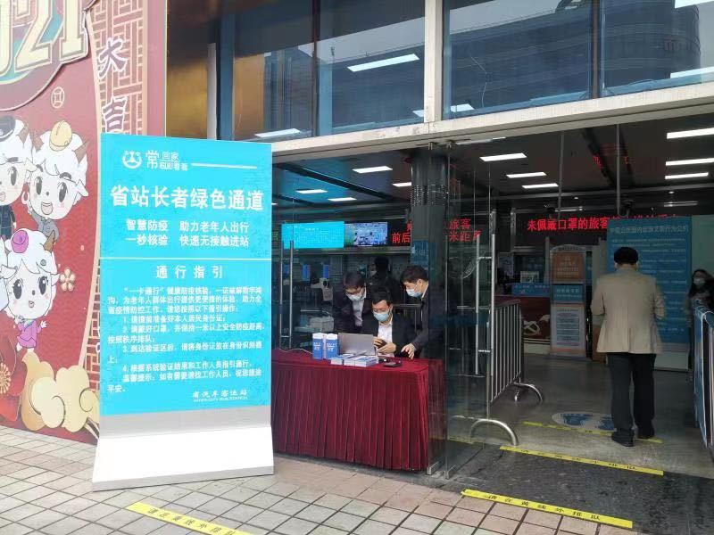 目前,省汽车客运站已在全省范围内率先开通了客运站场长者绿色通道,并率先启用“健康防疫核验系统”,此系统通过识别旅客身份证,分析旅客轨迹,代替健康码进站乘车。乘客只需将二代身份证放在识别设备上方停留2秒,“健康码”信息便会实时出现在电脑屏幕上,绿码的旅客可快速通行,通行效率大大提升。