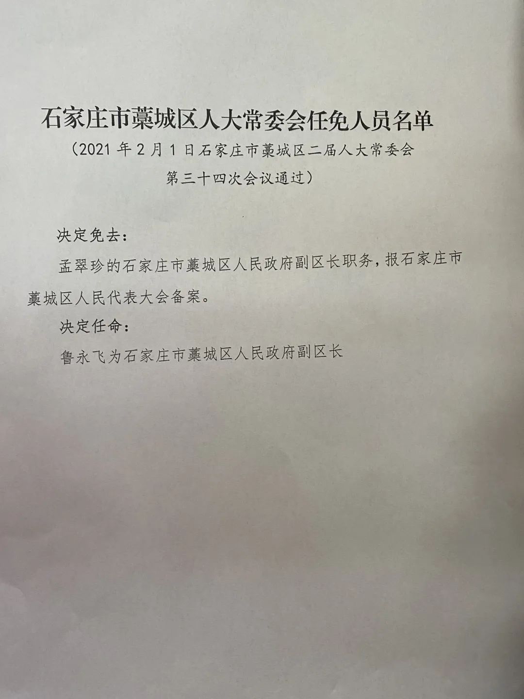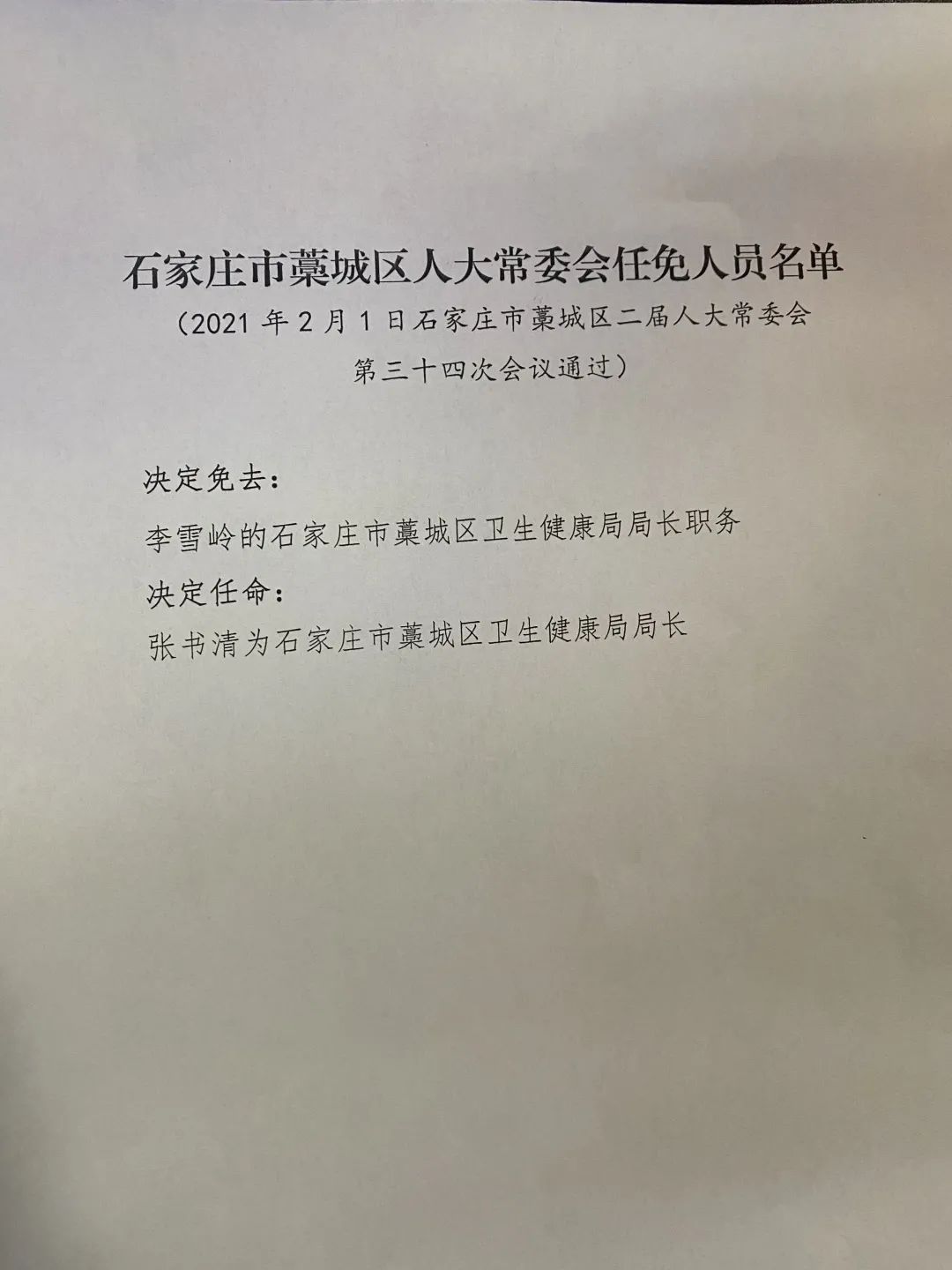 藁城区融媒体中心“掌中藁城”微信公众号发布藁城区最新人事任免:鲁永飞任副区长,张书清任卫生健康局局长。
