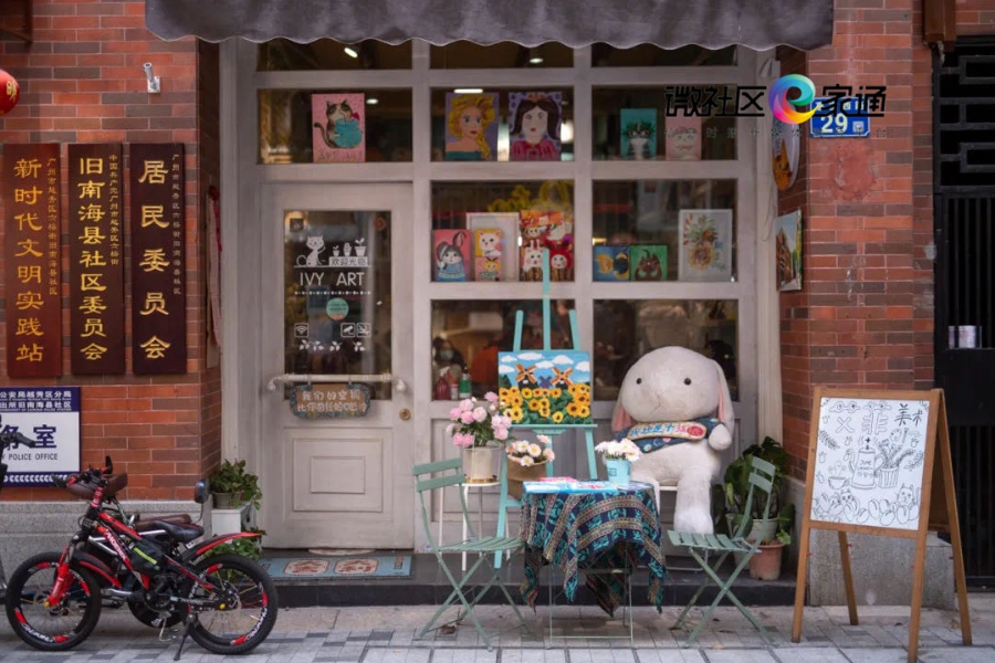 微改造后,旧南海县社区老建筑群的活力被重新唤醒且被赋予了更多新动能:优美舒心的环境不仅吸引年轻人来参观打卡,更迎来了一群创业者,他们为社区带来新的活力,像画廊、轻餐饮、咖啡厅、民宿、猫咖等业态陆续出现。