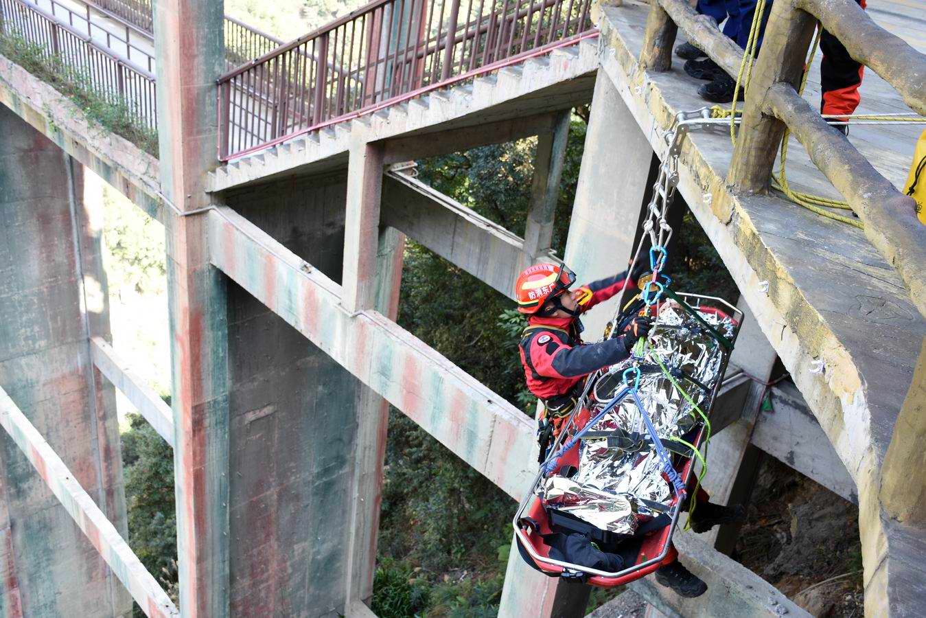 韶关地处南岭山脉南部,峡谷众多、山地陡峻,仁化丹霞山、曲江船底顶、新丰云髻山等都是户外休闲名地,奇峰异石吸引国内外众多登山爱好者露营探险,故而受伤、失踪等山岳事故时有发生。1月29日,韶关消防山岳事故救援专业队在乳源云门山开展了一场惊险的山岳事故救援实战拉动演练。