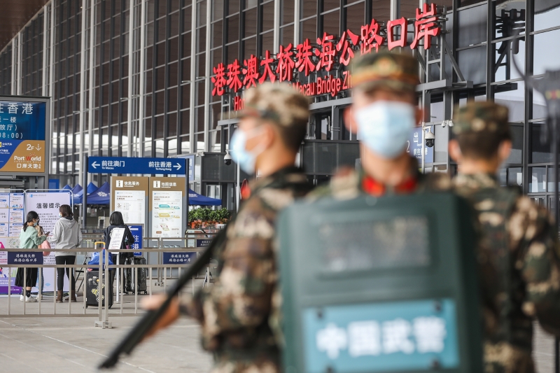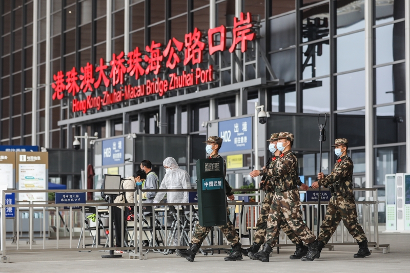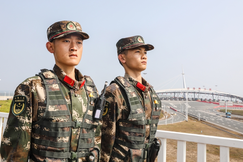 1月28日,2021年春运大幕正式开启。武警广东总队执勤第二支队的新兵刚刚走上港珠澳大桥一线执勤岗位,就迎来春运港澳务工人员跨境返乡高峰。口岸枢纽、联检通道、观景平台到处可以看到身着“沙漠迷彩”的忙碌身影,他们为返乡旅客带来“安全感”。
