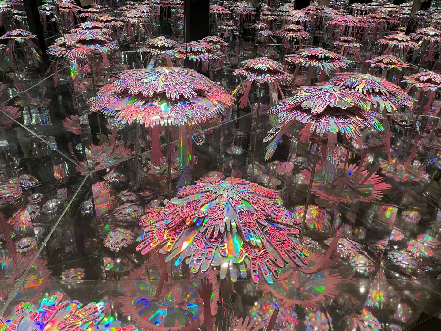 在作品《不息》的不远处,是作品《转运花园》,陈粉丸在一个狭小的空间里安置了若干个会旋转的粉色装置,仿佛由无数双手拼接而成。陈粉丸坦言:“外界想到纸都是脆的、薄的,我希望能将它做成一个大家没有想象过的样子。我从小就喜欢观察手,在如今人人都戴着口罩的时代,我甚至可以通过手来认人。”这也是为何,她的这两个作品中,“手”这个元素随处可见。