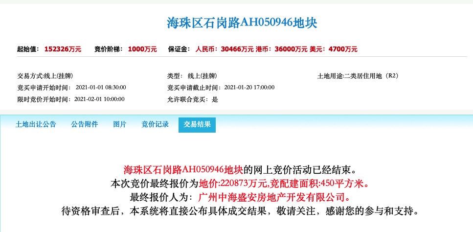 海珠区近一年来发力发得有点猛,不仅多个旧村改造项目陆续进入实质性阶段,在居住用地出让方面也毫不示弱,一不留神就抢个“热搜”。2月1日,海珠区石岗路AH050946地块经过近70轮竞价后成功拍出,最终成交总价超过22亿元以及需配建450平方米政府性房源(住宅)。该地块受到多个房企的争夺,最终以超过“5字头”楼面地价成功出让,也再次说明市场对海珠区宅地的认可。