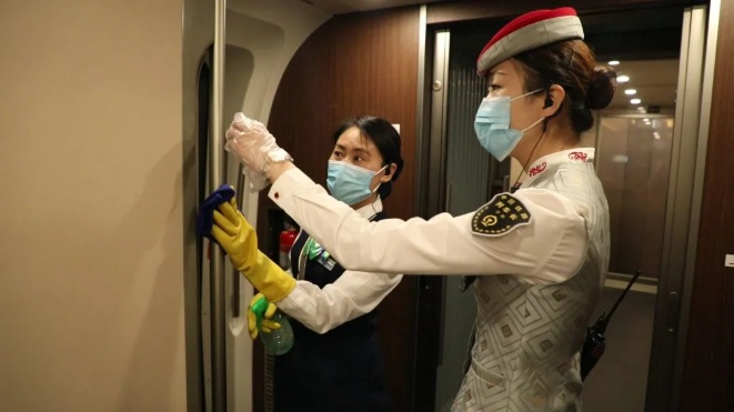动车组列车最大限度增加新风供应量,各车厢每隔5至10分钟可完成一次新风换气,同时增加空调滤网清洗消毒频次,确保通风系统运转良好。非空调列车采取勤开车窗及时通风换气,保持车厢空气流通。