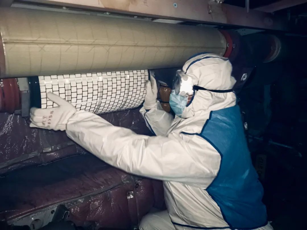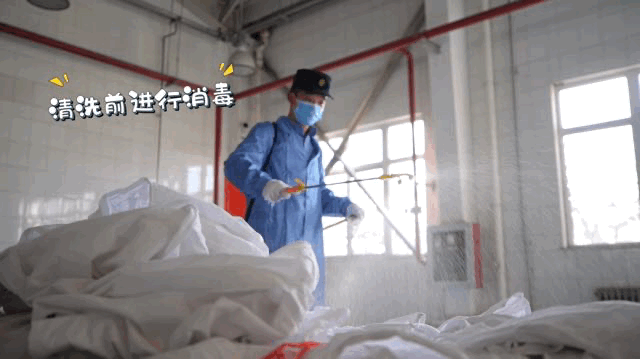 按照疫情防控要求,卧具洗涤由冷水洗涤调整为90℃的高温洗涤,洗涤时间也增加至1个半小时。洗涤过程则强化了消毒,除加入常规洗涤料外,还增加了20片消毒片和白漂粉。
