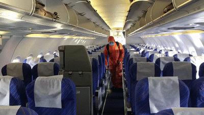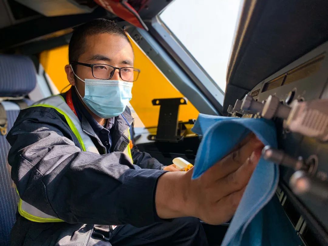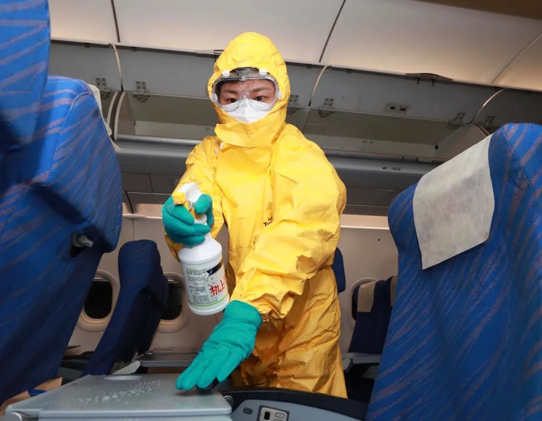 整舱消毒20分钟后,还需要对旅客接触到的扶手、小桌板用消毒液擦拭。