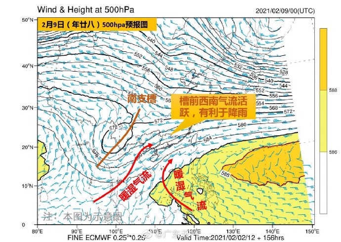 未来几天,广东大部市县晴到多云,西部市县早晚有(轻)雾。趁着天气好,“洗邋遢”就不用等到年廿八了!因为预计2月9日(年廿八)起广东将有一次降水过程,西南暖湿气流将要来袭!届时,久旱的广东将迎“春露”!