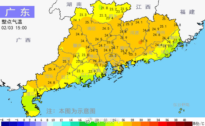 根据3日15时气温分布图显示,广东气温基本在25℃左右,可见“大鸡腿”被烤至金黄。春光明媚的立春当天,却热得似乎像是初夏。