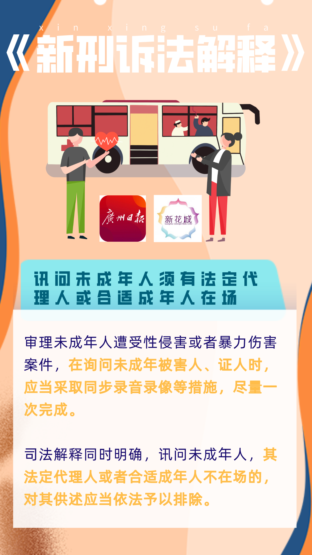此外,审理未成年人遭受性侵害或者暴力伤害案件,在询问未成年被害人、证人时,应当采取同步录音录像等措施,尽量一次完成。要加强与有关部门配合,对遭受性侵害或者暴力伤害的未成年被害人及其家庭实施必要的心理干预、经济救助、法律援助、转学安置等保护措施,加强对未成年人的特殊保护。司法解释同时明确,讯问未成年人,其法定代理人或者合适成年人不在场的,对其供述应当依法予以排除。