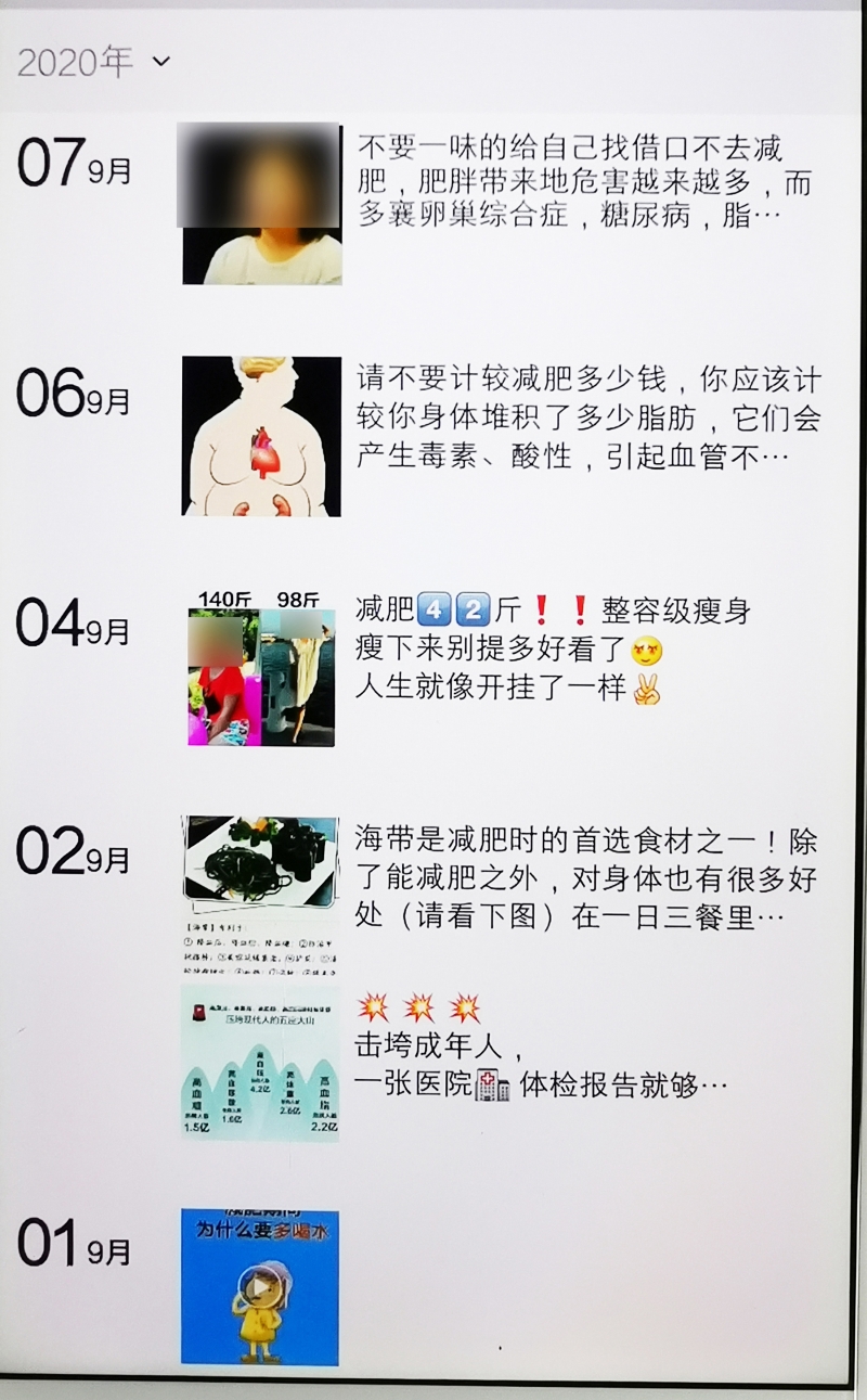 比如,“50%的慢性病都跟胖有关……整容级瘦身瘦下来别提多好看了,人生就像开挂了一样……请不要计较减肥多少钱,你应该计较你身体堆积了多少脂肪……女人太节省,省下的并不是钱,而是一个廉价的人生……”