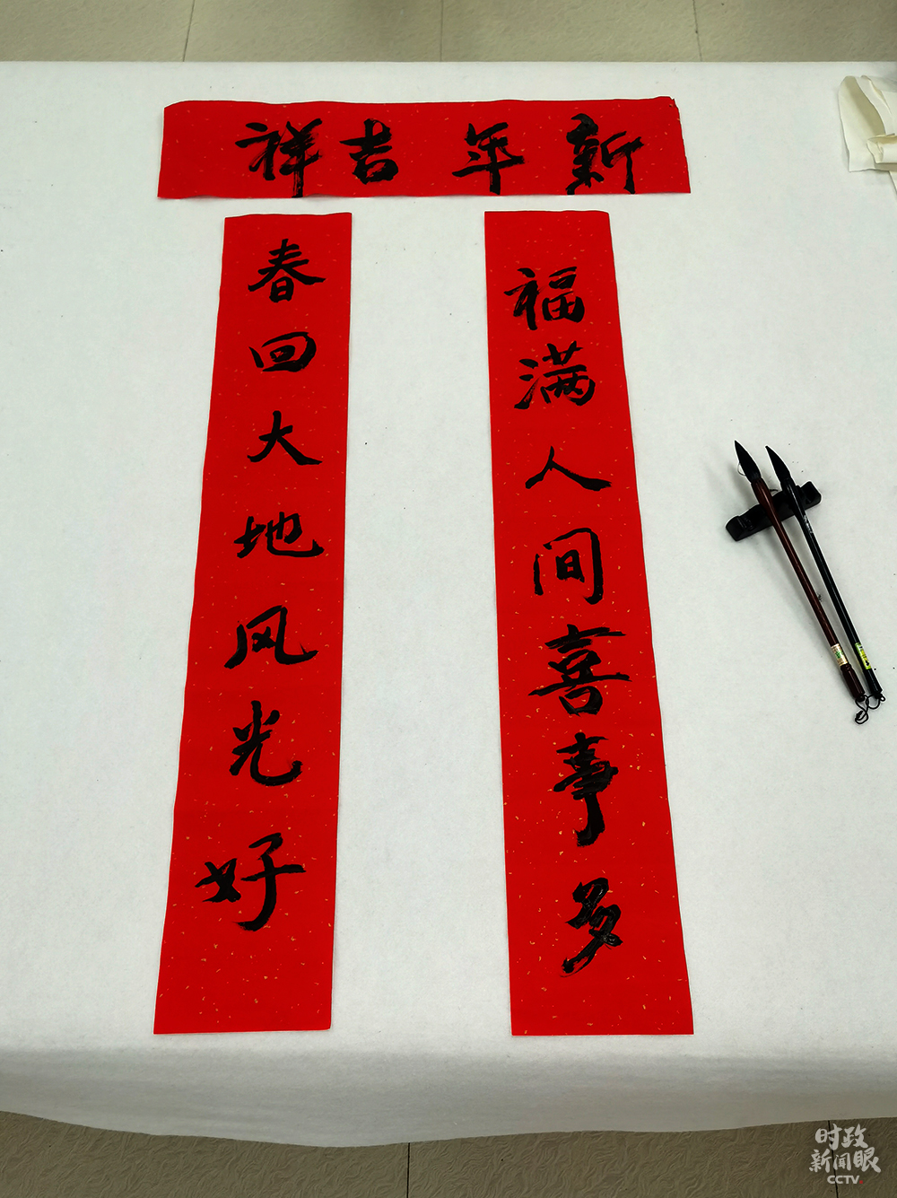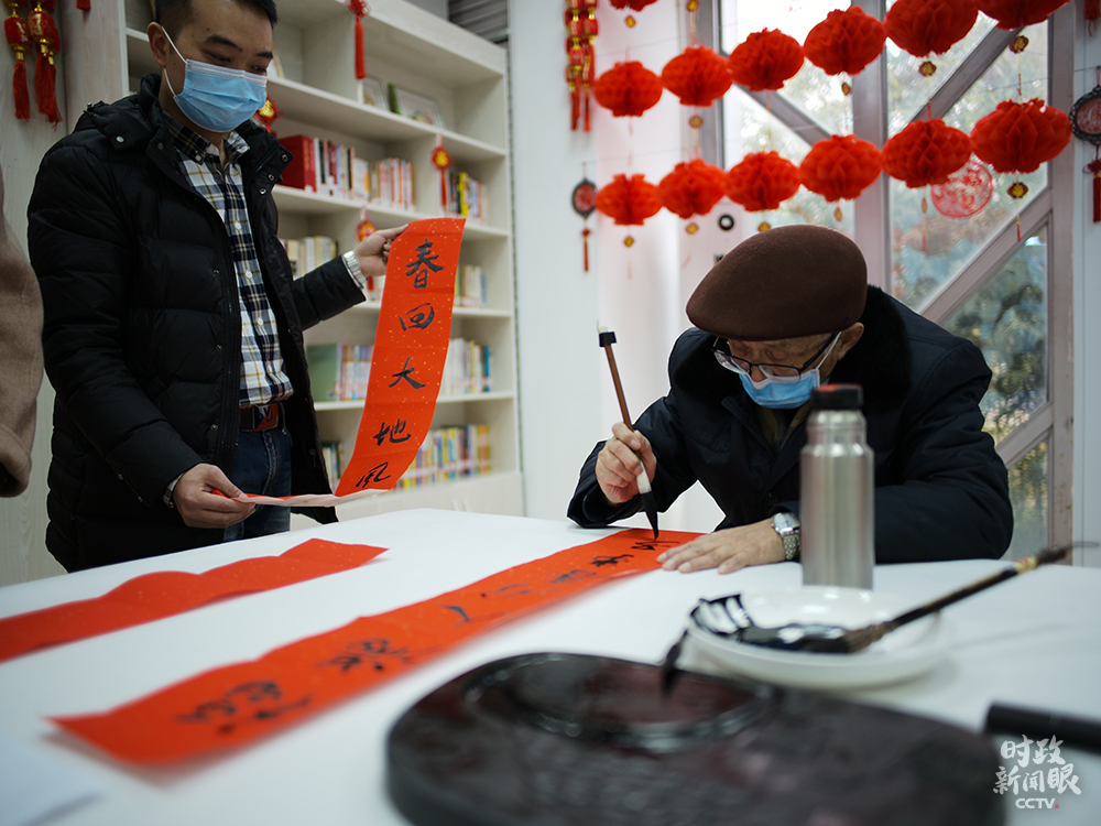 △84岁的社区居民戴世伦老先生,曾在贵州广播电视大学任教。这是他写的春联。(总台央视记者彭汉明、姚瑶拍摄)群众真有感,才叫真落实。金元社区建设的“三感社区”,就是来自基层的鲜活实践。