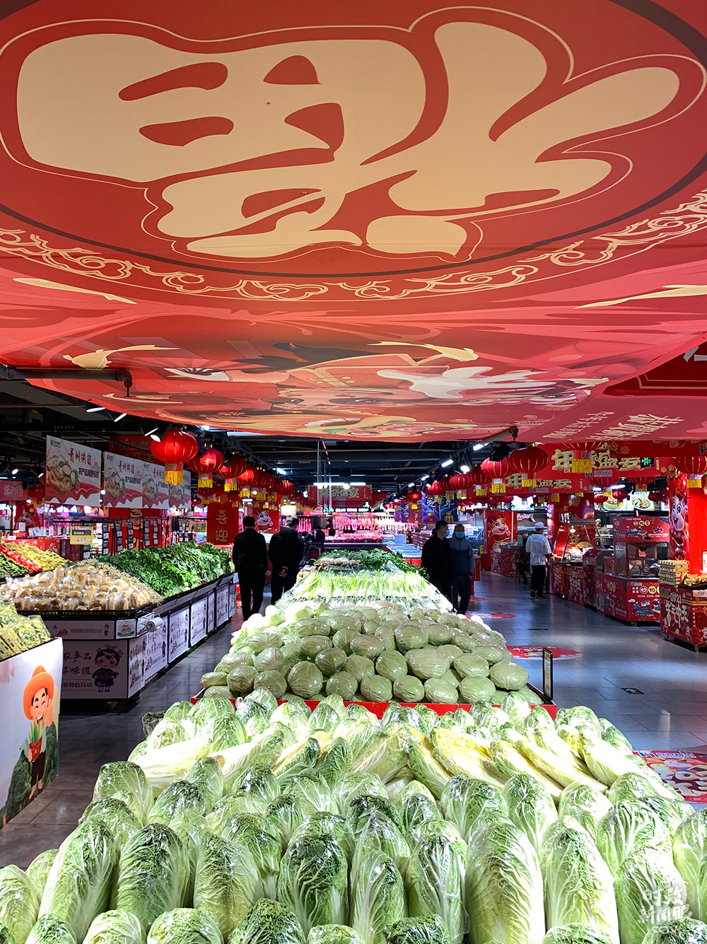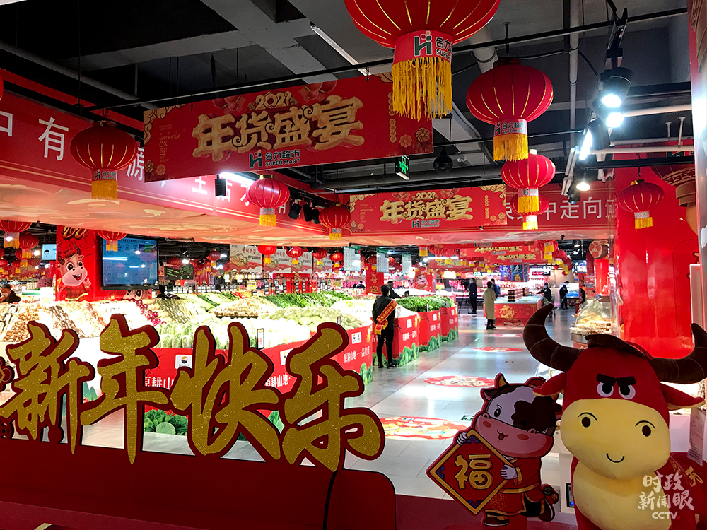△超市内“福气”与“年味儿”十足(总台央视记者章猛拍摄)人民群众能不能过好年,市场供应很关键,这也是总书记近年来春节前夕考察经常牵挂的事。从兰州市城关区五泉菜市场,到锡林浩特市楚古兰街道爱民社区超市,从昆明新春购物博览会年货街,再到这次的惠民生鲜超市,都留下了总书记的足迹和挂念。他曾强调,“菜篮子”、“米袋子”、“果盘子”,都是事关民生的大事。有关部门要做好工作,确保节日期间市场供应充裕,质量安全可靠,让群众过一个安定祥和的春节。