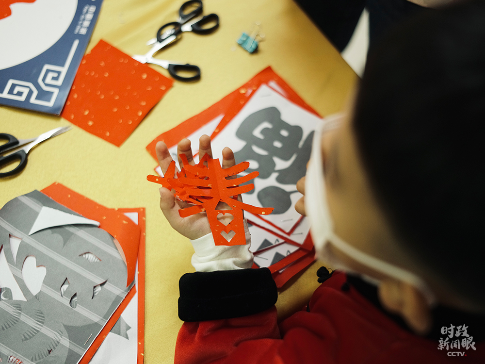 △孩子们在社区活动室练习剪纸。(总台央视记者王哈男拍摄)基层党建如何加强 总书记郑重宣示