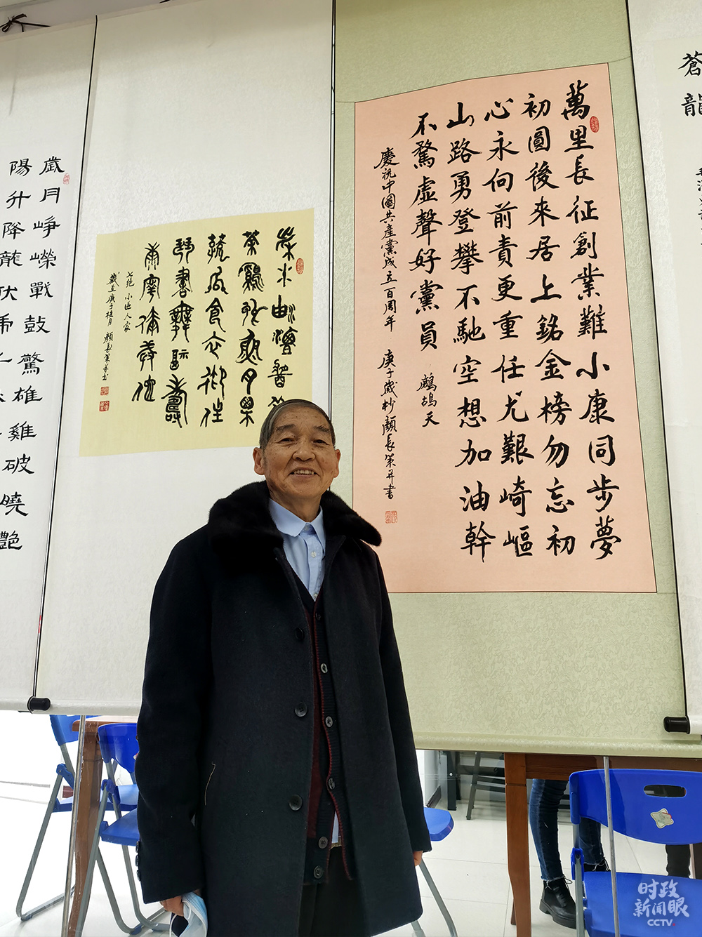 △这是87岁的社区居民颜长策老先生为庆祝中国共产党成立100周年创作并书写的诗作。(总台央视记者姚瑶拍摄)今年是中国共产党成立100周年。总书记强调,要以庆祝建党100周年为契机,引导党员、干部加强党性锻炼、党性修养,坚定理想信念,百折不挠把自己的事办好。