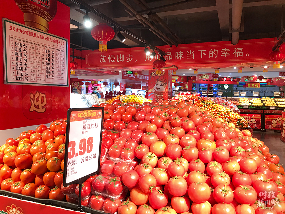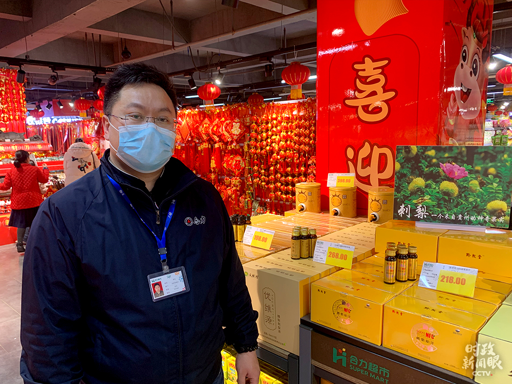 △红菜椒、菜心等蔬菜(总台央视记者石伟明、史伟拍摄)为了满足消费者就地过年的需求,超市主要增加了本地的特色产品。店长黄东告诉《时政新闻眼》,天麻、灵芝、杜仲组成的“贵州三宝”是这些天的热销商品。黄东是吉林人,他说自己也积极响应号召,今年留在贵州过年。