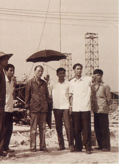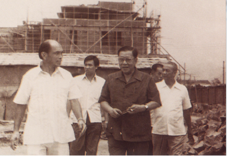 上世纪70年代末,改革开放春风吹遍神州大地。广大旅外乡贤桑梓情深,纷纷回来支持家乡经济建设。在广东番禺县委县政府的高度重视与支持下,番禺乡贤何贤、霍英东、张耀宗和梁昌哲嗣等港澳知名人士为家乡出谋划策,仗义捐资兴建番禺宾馆。图为何贤先生(前排右一)、霍英东先生(前排左一)在番禺县领导陪同下视察番禺宾馆建设工地。