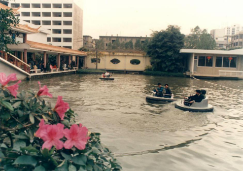 番禺宾馆开业四十年来,在服务社会、服务大众、服务政务、创造就业等方面发挥了标杆作用,为番禺区社会经济发展作出了重要贡献。图为上世纪80年代,番禺宾馆水上游乐场成为市民休憩游玩的好去处。