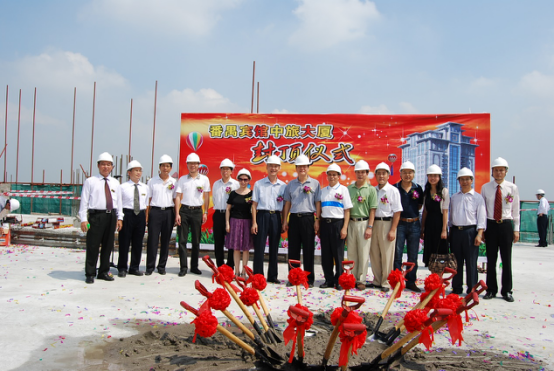 2009年,番发集团、旅游总公司领导和番禺宾馆领导为番禺宾馆主楼(中旅大厦)举行封顶仪式。