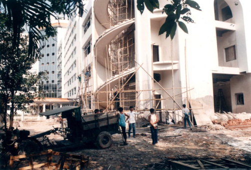 为适应时代发展和需求,番禺宾馆开始扩建,图为1991年,联谊楼·娱乐城正在建设。