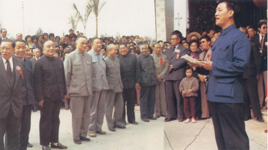 1980年12月13日,番禺宾馆正式开业,由番禺县县长黄伟宁主持开业仪式,出席仪式的嘉宾有何贤先生(前排左一)、时任广州市委书记杨尚昆(前排左二)、广东省原省长梁灵光(前排左三)等。